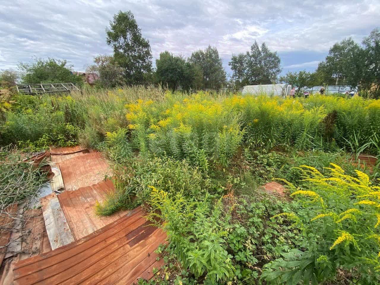 Участок просто заросший травой (без вековых деревьев), имеется две теплицы.