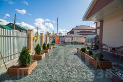 Предлагается к продаже загородный дом общей площадью 157 м², расположенный в перспективном и обустроенном коттеджном поселке Октябрьское. Дом возведен для собственного проживания с применением качественных материалов и продуманной планировкой. На первом этаже расположена объединенная гостиная зона с современной кухней и выходом в сад, отдельная гардеробная и просторный санузел. Второй этаж занимает три изолированные спальни, второй санузел и холл, адаптированный для размещения спортивного инвентаря. Рационально использовано пространство под лестницей, где организована кладовая для бытовых нужд. Участок площадью 8 соток полностью огорожен, благоустроен и украшен ландшафтными насаждениями, включая пихты; предусмотрено место для установки бассейна, который остается новым владельцам. Важным преимуществом является наличие отдельного современного гостевого домика. В настоящее время объект подключен к газоснабжению, все необходимые работы завершены. Локация отличается развитой инфраструктурой: в шаговой доступности находятся супермаркеты, аптеки, кафе и автобусная остановка, а торговый центр "Аллея" расположен в пяти минутах езды на автомобиле.