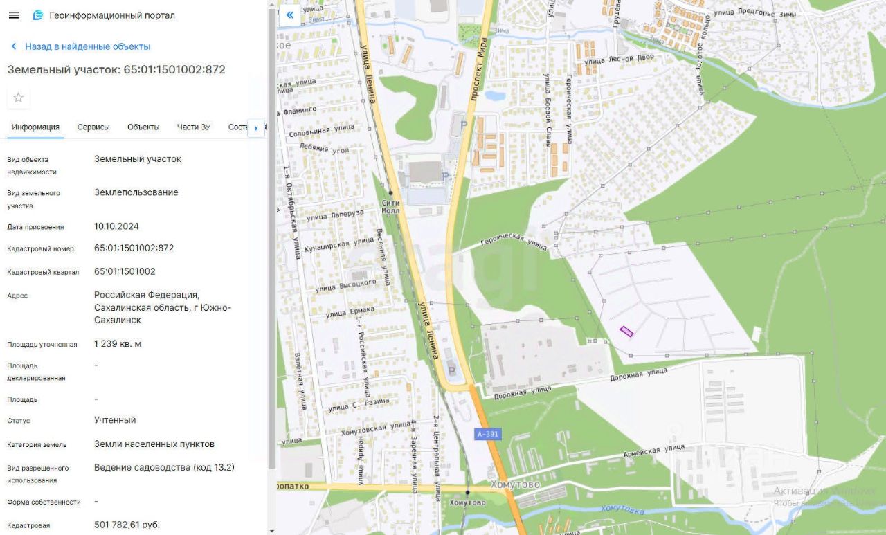 Продается земельный участок 12,39 соток в собственности, в ДНТ (дачное некоммерческое товарищество) "Жемчужное" восточнее района "Поле Чудес". Участок расположен в районе пл. р. Хомутово на восток, на перекрестке улиц Ленина- пр. Мира, проезжаем мимо "Экспромт" на восток 1 км по ул. Дорожной. Дорога частично заасфальтирована. Лесная зона, перспективный район, планируется газификация. Улицы нарезаны, участки размежеваны, установлены столбы электропередачи. Кадастровый номер - 65:01:1501002:872. Строится можно, на территории уже возводят дома. Удобная транспортная развязка. Имеется автобусная остановка (на перекрестке пр. Мира и ул. Ленина. Неподалеку Сити Молл, Аква Сити, торговые павильоны, в 2024 году построены два детских сада и школа в номом районе ЖК "Горизонт". На территории есть еще участки.