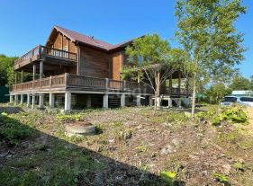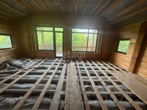 Дом построен из бруса 24 на 25, фундамент заливная плита, 680 без палубы, с палубой 820 метров.