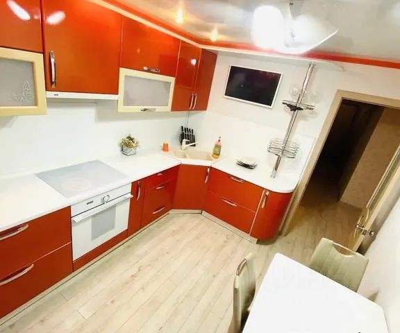 УДОБСТВА: Бытовая техника, большой телевизор в спальной комнате, большая двуспальная кровать, двуспальный диван, утюг, фен, гладильная доска, электрическая плита, духовой шкаф, электрический чайник, вытяжка, холодильник, микроволновая печь, посуда для приёма и приготовления пищи, стиральная машина, интернет WiFi, спутниковое ТВ.